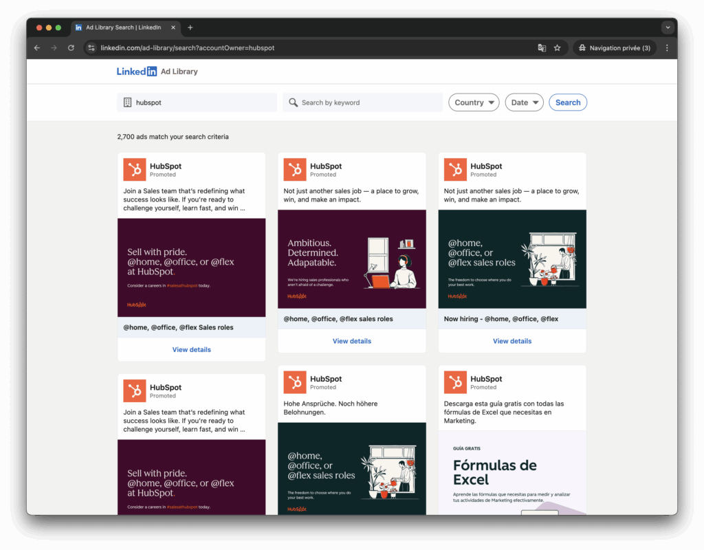 En somme, même si la LinkedIn Ads Library n’offre pas encore la profondeur des autres outils du marché, elle constitue un complément intéressant pour décoder les tendances visuelles et narratives sur la plateforme de référence du marketing B2B.